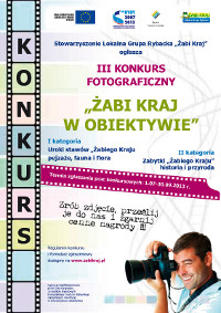 Stowarzyszenie Lokalna Grupa Rybacka "Żabi Kraj" ogłasza III KONKURS FOTOGRAFICZNY „Żabi Kraj w obiektywie” Regulamin oraz karta zgłoszeniowa pod linkiem : http://www.zabikraj.pl/1126,konkurs-fotograficzny-zabi-kraj-w-obiektywie-po-raz-trzeci-!.html Termin zgłaszania prac: 01.07-30.09.2013 r. |