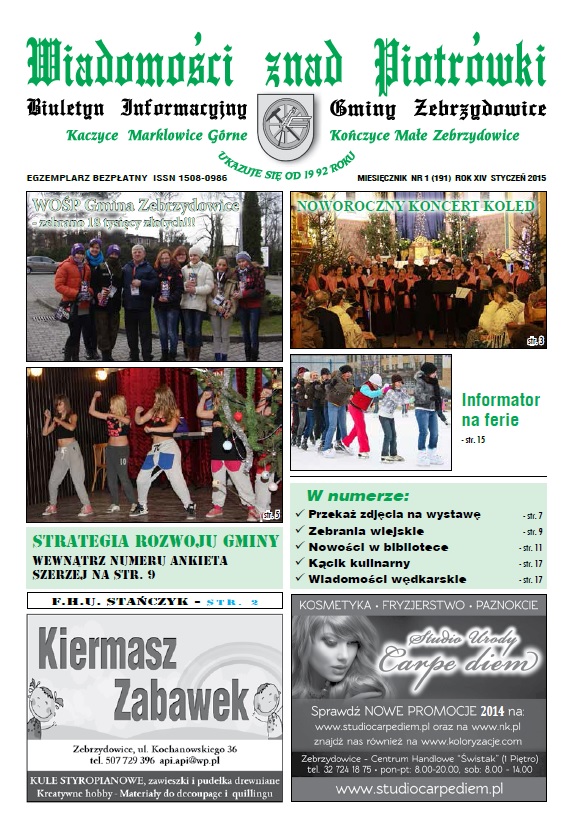 Na stronie www.wzp.zebrzydowice.pl opublikowano najnowsze wydanie Gminnego Biuletynu Informacyjnego (styczeń 2015) -  Wiadomości znad Piotrówki.