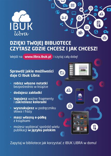 Gminna Biblioteka Publiczna w Zebrzydowicach dołączyła do wirtualnej czytelni IBUK LIBRA. Dla czytelników korzystanie z tej czytelni jest darmowe, spełnić trzeba tylko kilka prostych warunków. IBUK Libra to pierwsza i największa w Polsce czytelnika podręczników akademickich, książek naukowych, popularnonaukowych i nie tylko! Gminna Biblioteka Publiczna w Zebrzydowicach od 4 sierpnia zapewnia dostęp do blisko 2 tysięcy publikacji elektronicznych platformy IBUK Libra.