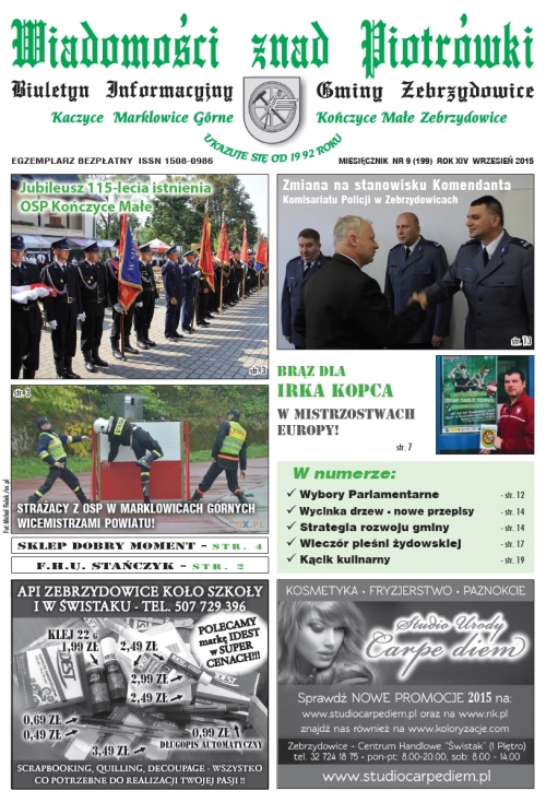 Na stronie www.wzp.zebrzydowice.pl opublikowano najnowsze wydanie Gminnego Biuletynu Informacyjnego (sierpień 2015) -  Wiadomości znad Piotrówki.