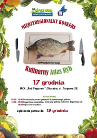 Zapraszamy wszystkich miłośników potraw z ryb do wzięcia udziału w Międzyregionalnym Konkursie Kulinarnym "Kulinarny Atlas Ryb" organizowanym przez Stowarzyszenie Rybackie "Żabi Kraj". Do konkursu można zgłosić 2 potrawy przygotowane z ryb słodkowodnych. Prezentacja potraw wraz z rozstrzygnięciem konkursu będzie miała miejsce 17 grudnia 2015 r. (czwartek) w sali widowiskowej MCK "Pod Pegazem" w Skoczowie przy ul. Targowej 26. Zgłoszenia przyjmujemy do dnia 13.12.2015 r. Szczegóły na stronie internetowej: www.zabikraj.pl |
