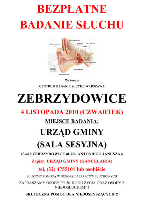 BEZPŁATNE BADANIE SŁUCHU - 4 LISTOPADA 2010 (CZWARTEK)