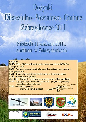 Zapraszamy na Dożynki  Diecezjalno - Powiatowo - Gminne. Szczegóły na plakacie poniżej (kliknij aby powiększyć):