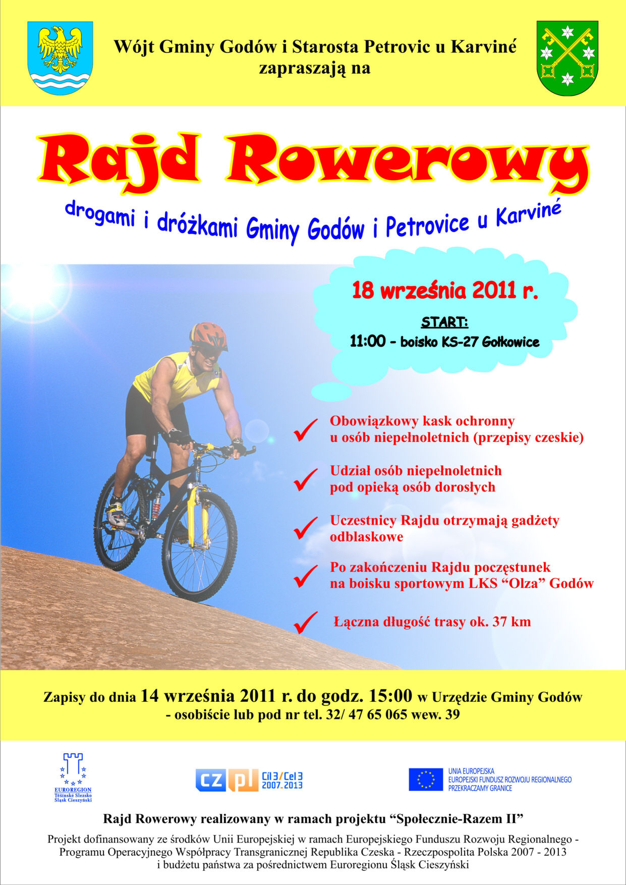 Poniżej zaproszenie ościennych gmin: Godowa i Petrovic u Karviné na Rajd Rowerowy drogami i dróżkami Gminy Godów i Petrovice u Karviné.