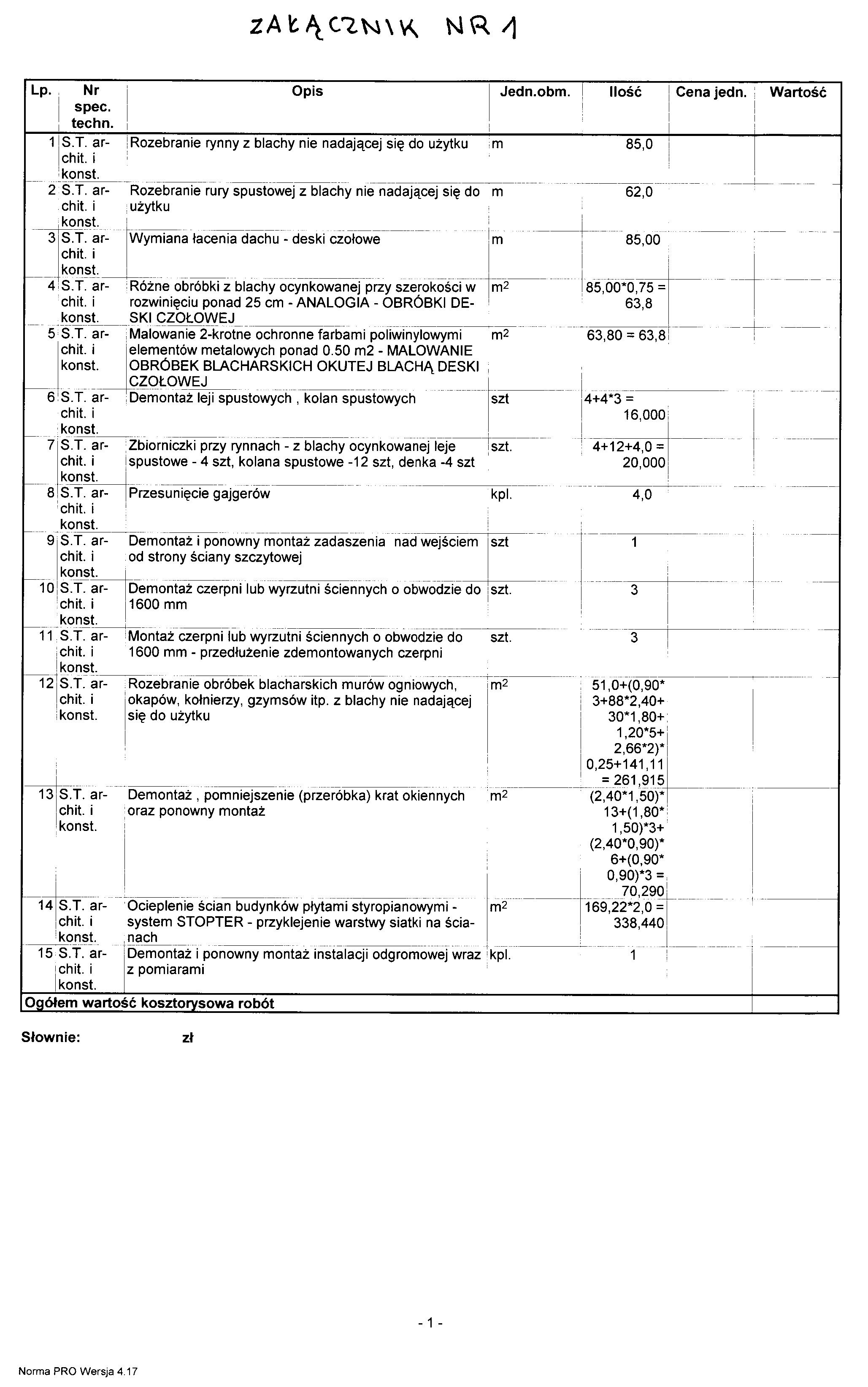 informujemy, że zamianie ulega poz. 6 przedmiaru. Zmieniona pozycja