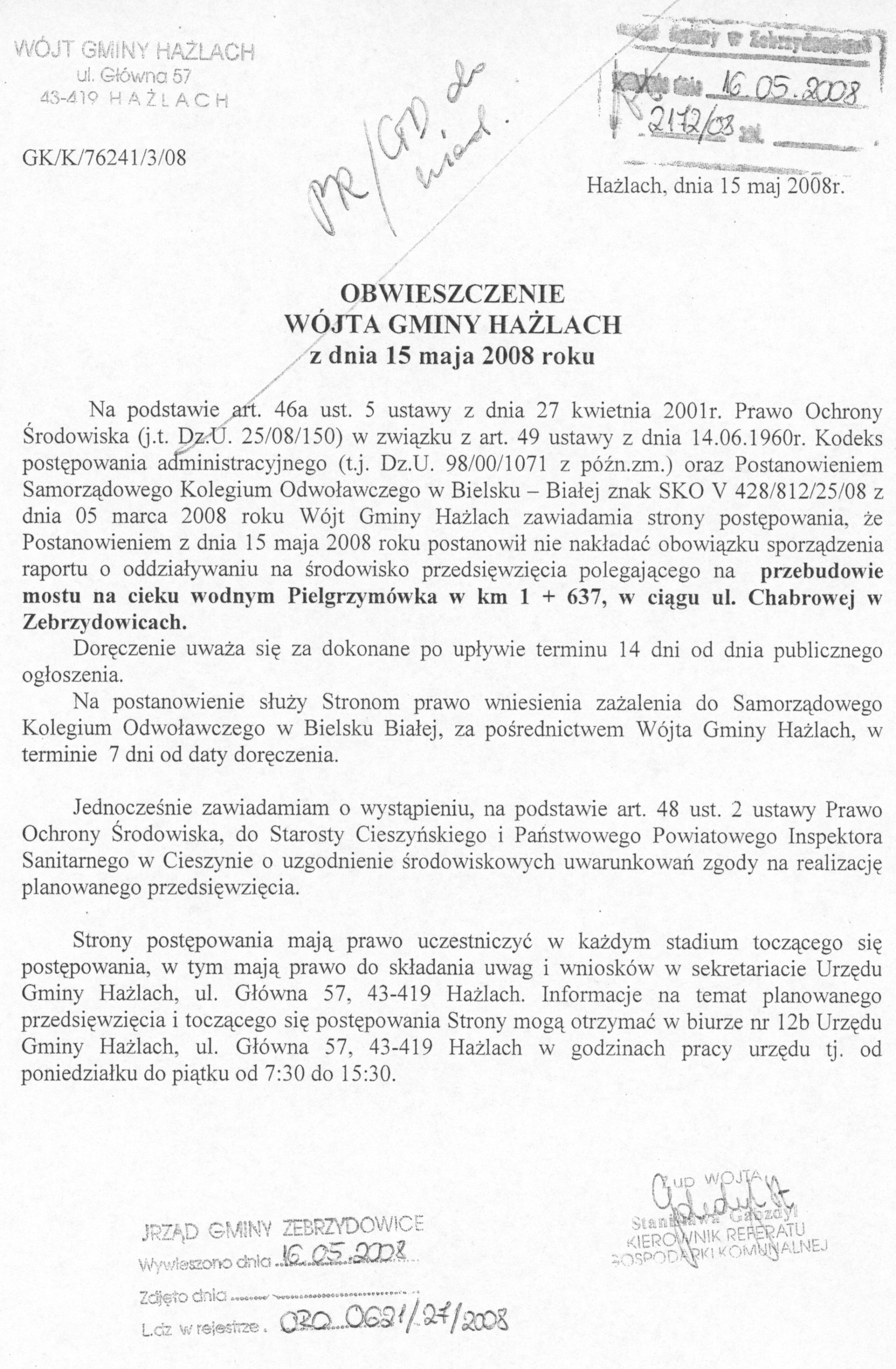 Zebrzydowice, dnia 21.02. 2008 r.